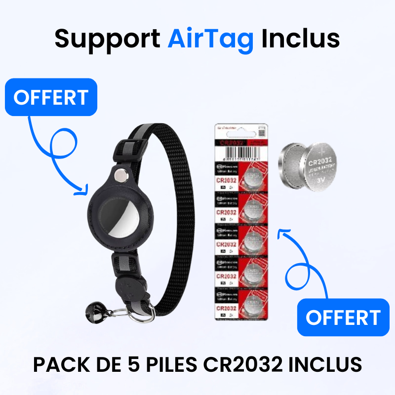 🎁 Bonus : support AirTag + 5 piles CR2032 pour une utilisation immédiate dès réception.
